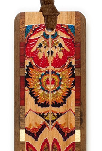 Handmade Wooden Bookmark - Kaleidoscope Design on Cherry with Brown Suede Tassel