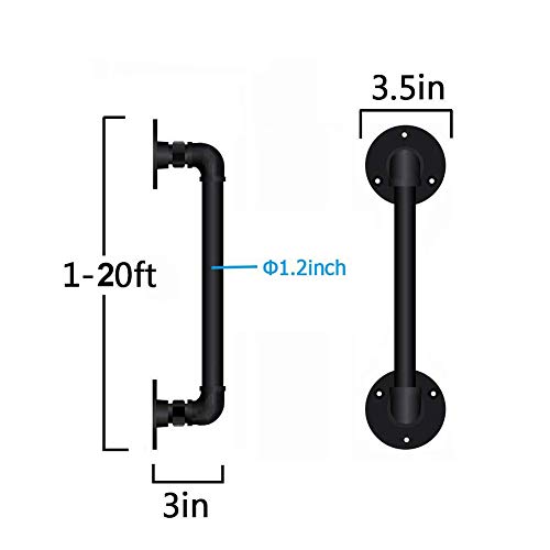 Handrail Corrimano-Kit Completo, Zincate in Ferro Battuto Scale Ringhiere, Passamano d'Epoca Industriali per Scale Interne Ed Esterne,Nero, Dimensioni Personalizzate (da 1 A 20 Piedi)