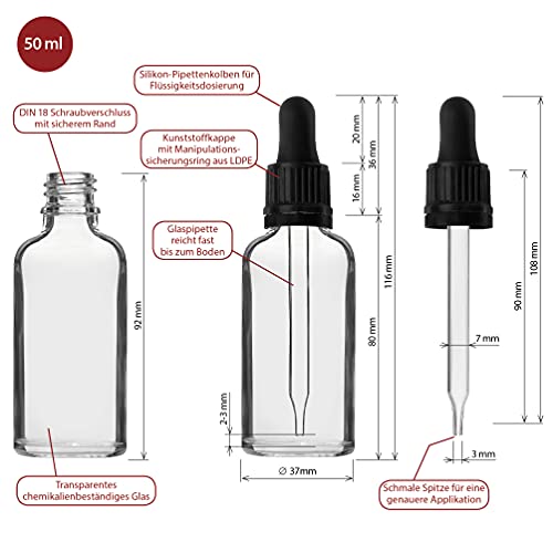 ?? Facile da dosare: la robusta bottiglia di vetro ha un coperchio con pipetta di vetro integrata con una punta stretta per un dosaggio preciso. La pipetta ? stampata con una scala di facile lettura in modo che le quantit? fino a 1 ml possano essere misurate direttamente.