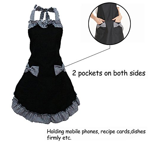 HANERDUN, grembiule da donna in stile bucolico, con fiocco e tasca, colore nero
