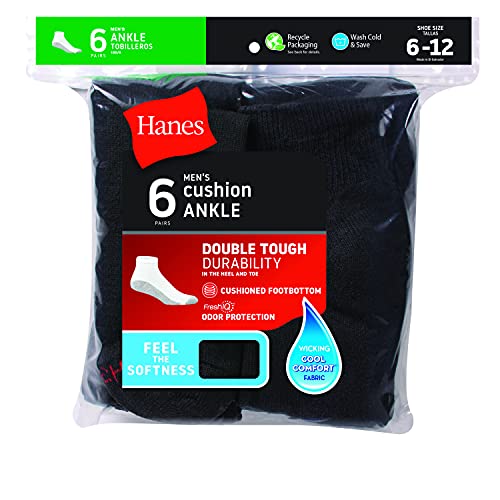 Hanes Mens Full Cushion Ankle with Grey Heel and Toe 6-Pack (186/6)