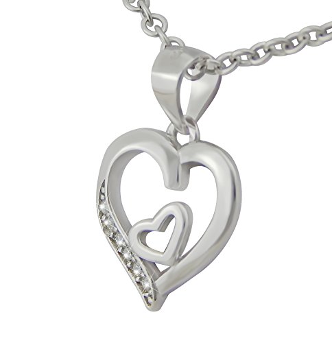 Hanessa catena in 925 vero argento rodiato donna della Collana della catena e pendente argento - Cuore Con 6 zirconi pietre - regalo per la Donna