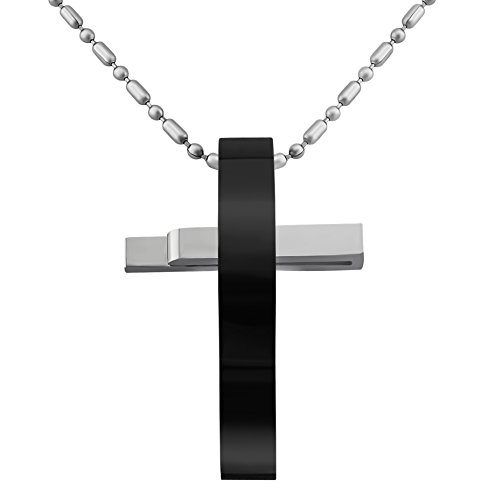 Hanessa Collana da uomo con ciondolo a forma di croce nera in acciaio inox, idea regalo di Natale per il fidanzato/marito, Nessuna pietra preziosa