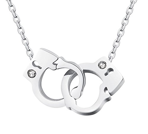 Hanessa Collana da donna in argento con ciondolo a forma di manetta, in acciaio inox, con strass, idea regalo per Natale, per moglie, fidanzata, donna, Nessuna pietra preziosa