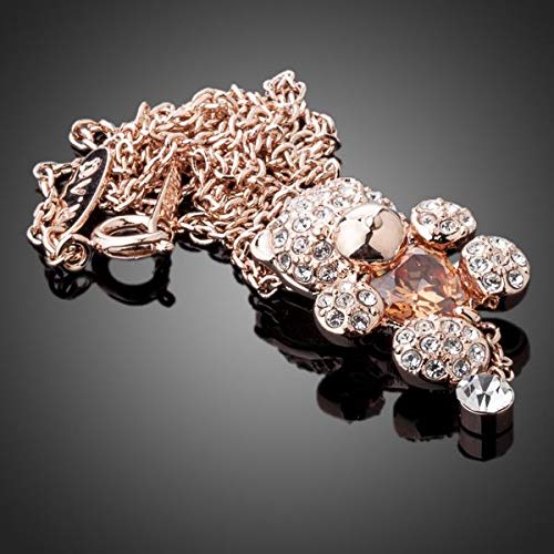 Hanessa Collana da donna placcata in oro rosa, orso dolce con strass, cuore regalo di Natale per la moglie/fidanzata, Strass, Strass