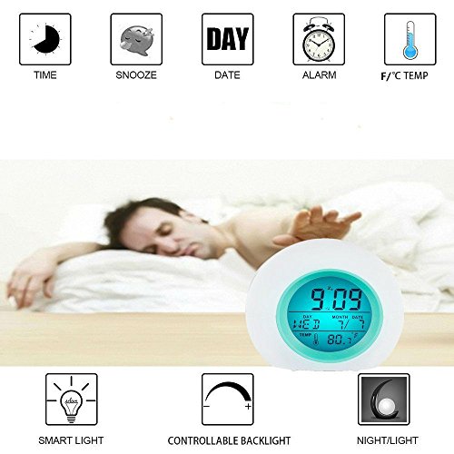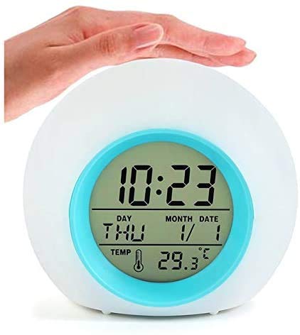 Hangang Sveglia Digitale, Wake Up Light Bambini Sveglia con 7 Luce di Colore Vario e 8 Suoni Naturali, Display a LED con Tempo, Data, Temperatura, Funzione Snooze 809N