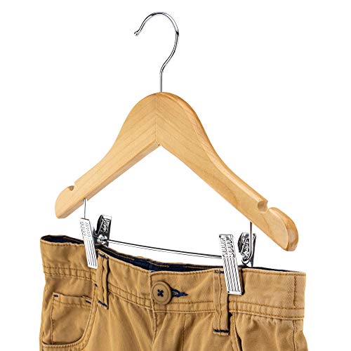 HANGERWORLD 12 Grucce per Bambini 30cm in Legno con Pinze in Metallo per Gonne e Pantaloni Neonato
