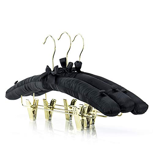 HANGERWORLD 5 Grucce in Satin Nero 43cm Imbottite con Pinze in Metallo per Pantaloni e Gonne