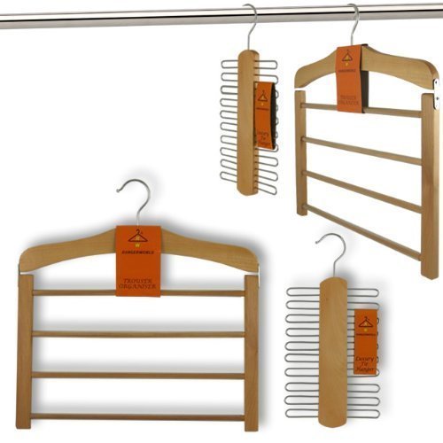 HANGERWORLD Set Portactavatte e Gruccia con 4 Ripiani in Legno Naturale Salvaspazio per Pantaloni