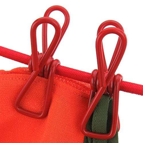 HANGERWORLD Filo Stendibiancheria Elastico 2m Rosso con 12 Mollette per Bucato