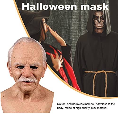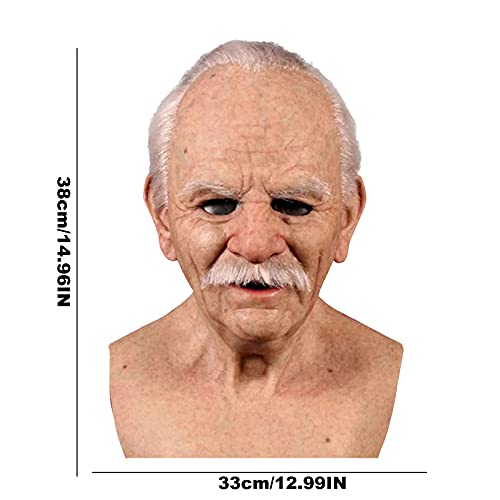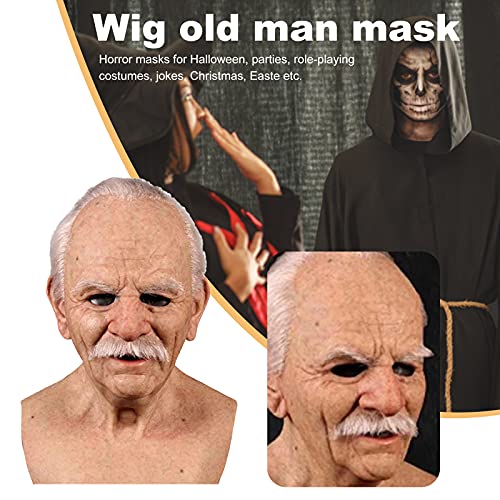 HANGHANG Maschera di Halloween Old Cald Man Mask, The Elder Old Man Copricapo Realistico Silicone Masquerade Full Head Tricky Props, Halloween copricapo reale orrore umano parrucca partito