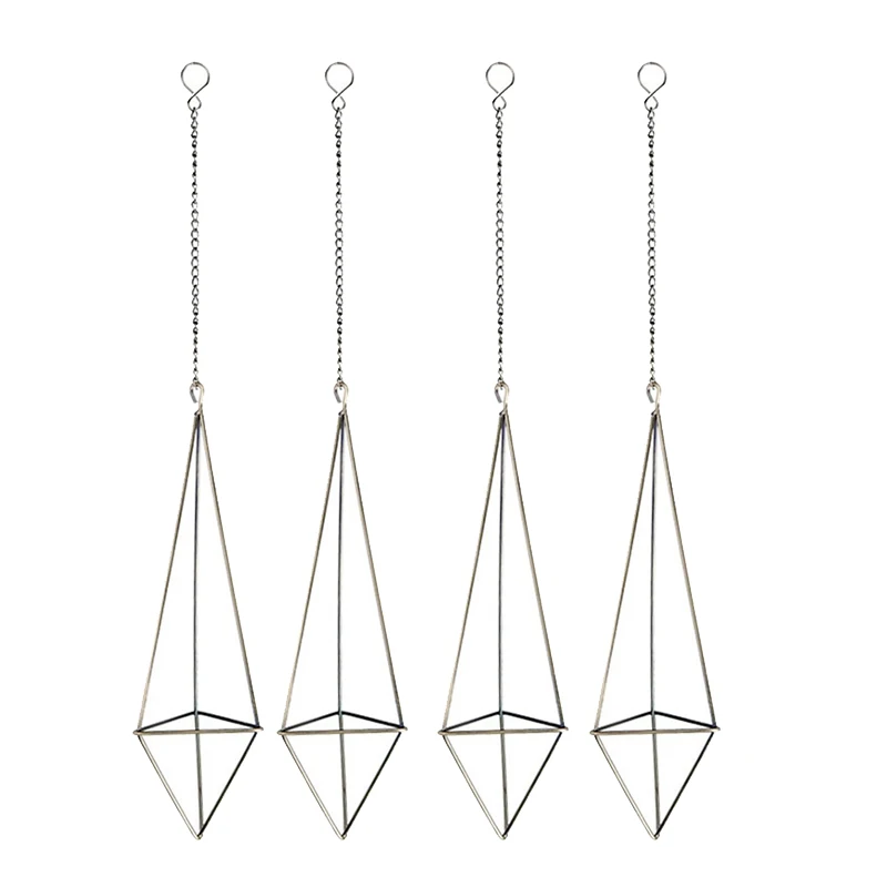 4 Pack Hanging Air Plant Holder for Tillandsia Display Geometric Planter with Chains Home Decor for Air Plants, Bronze
