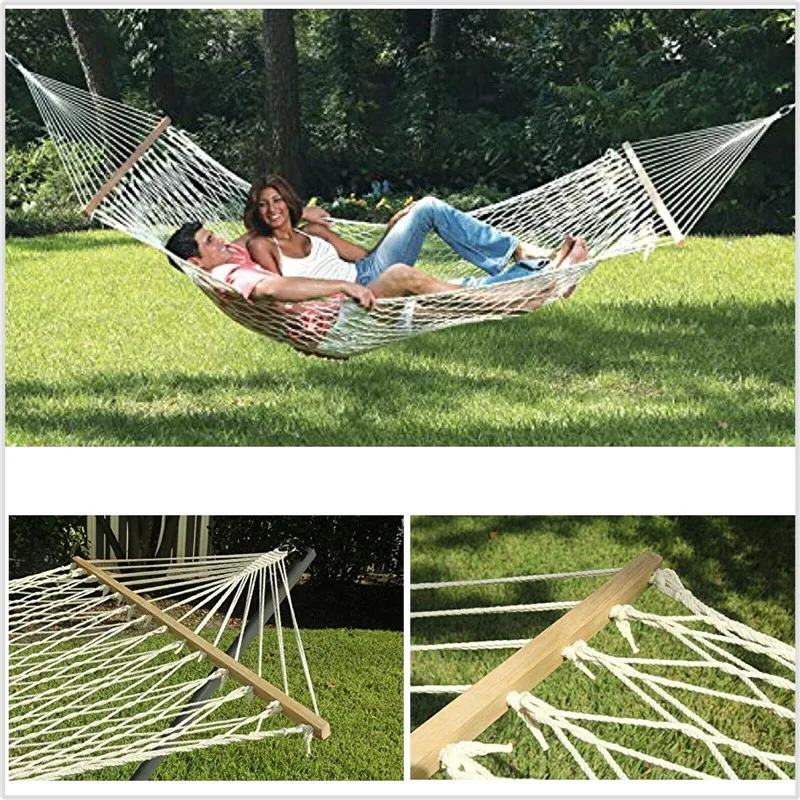 Mesh Net Hanging Bed Portable White Hammock Outdoor Solid Wood Swing Sleeping Camping Travel Hammocks