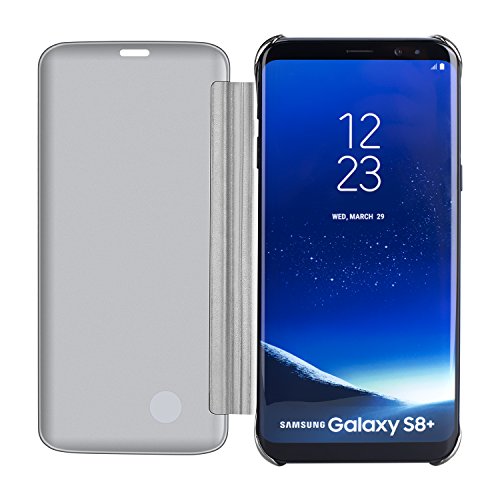 Hanglong Cover Per Smartphone Copertura Flip Custodia Specchio Supporto Con Schermo Temperato Per Samsung Galaxy S8 Plus - Argenta