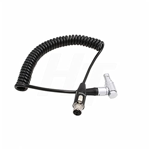 HangTon 12V TVLogic Alphatron EVF Monitor a spirale cavo di alimentazione ad angolo retto 2 pin a Mini XLR 4 pin