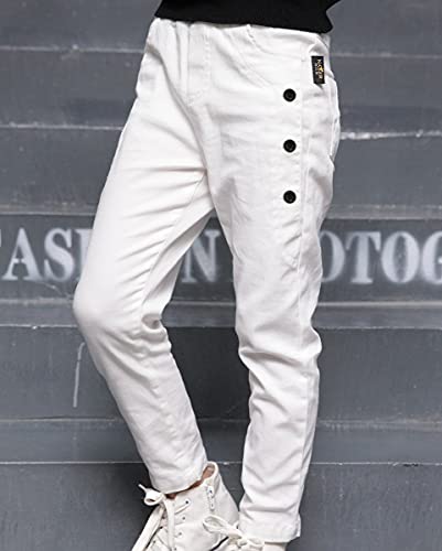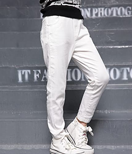 Hangzhikids Pantaloni da ragazzo elasticizzati in vita slim pantaloni casual età 4-14 anni, bianco, 13-14 Anni