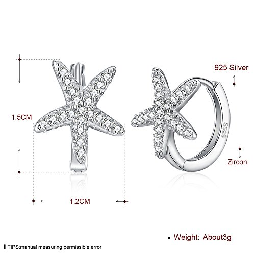 Hanie - Orecchini a cerchio da donna, a forma di stella marina in zirconia cubica bianca e argento Sterling 925, di diametro 15 mm, senza nichel e ipoallergenici