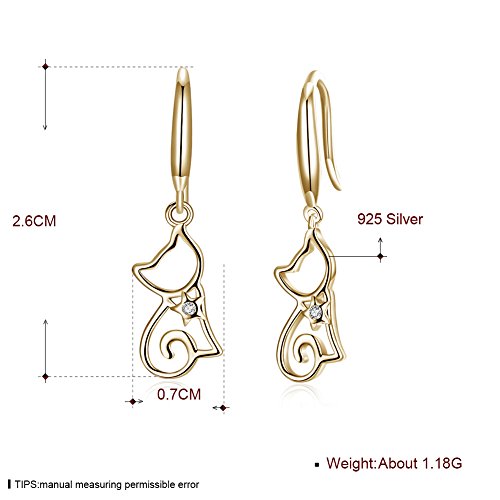 Hanie - Orecchini pendenti da donna, in argento Sterling 925, con ciondolo a forma di gatto, con zirconi bianchi, senza allergeni, idea regalo per moglie, colore: Oro, cod. CEH028b