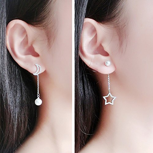 Hanie, orecchini pendenti per donna in argento Sterling 925 con stella e luna irregolari, perla e zircone rotondi, ideali come regalo di Natale per signore e ragazze