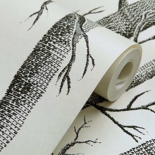HANMERO- Carta da parati Legno 3d in tessuto non tessuto, stile semplice e attuale, in bianco e nero, motivo: alberi di betulla, rotolo da quadri-10m*0.53m- per salotto o camera da letto
