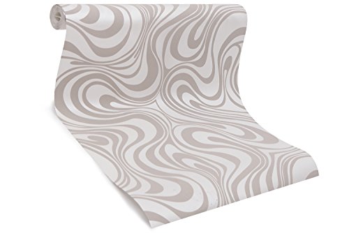 HANMERO Carta da Parati Moderna -5 rullos- Lusso Astratto Curve Glitter Tessuto Non Tessuto 3D per Camera da Letto Soggiorno TV Sfondo Decorazioni a Parete Bianco Panna