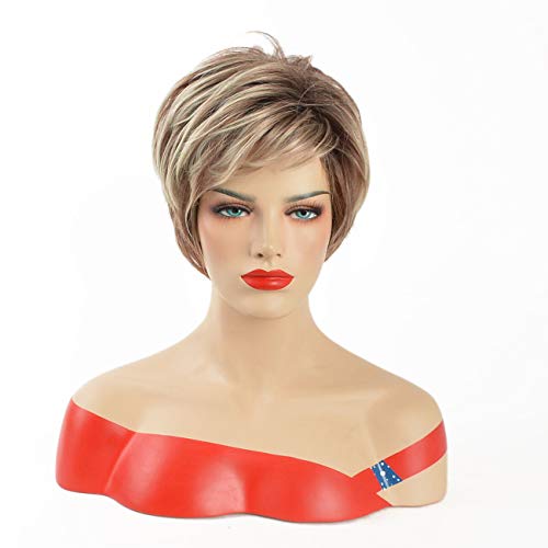 Hanne donna Short Mixed Blonde Bob parrucca resistente al calore per donne parrucca sintetica per uso quotidiano (Brown to Blonde Short WIG)