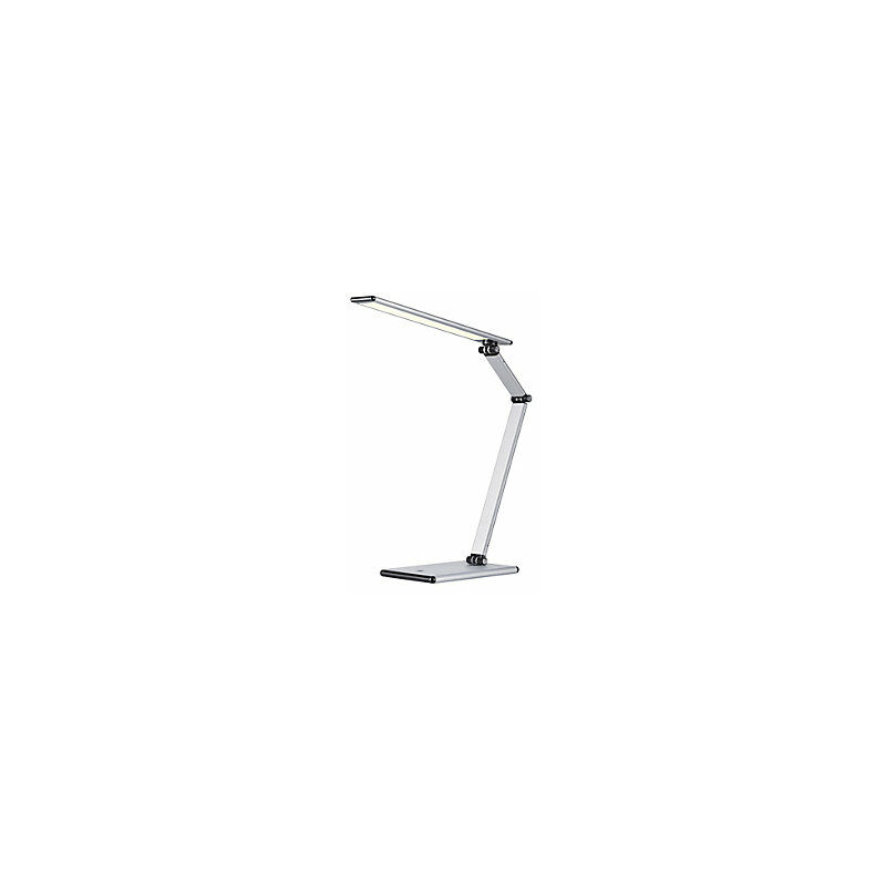 Lampada a LED da tavolo SLIM, con LED da 7 Watt, argento. Fornitura = montato. Tipo di prodotto = luci da tavolo. Base della lampada = base. Classe di efficienza energetica per fonte di luce = E (spettro da A a G). Consumo energetico = 7 kWh/1000h. Lampadina = LED. Potenza = 7 Watt. Colore della luce = bianco neutro. Temperatura di colore = 4000 K. Indice di resa cromatica = 83. Luminosità max = 880 Lux. Flusso luminoso = 360 Lumen. Tensione di alimentazione = 100 - 240 V. Cavo di collegamento = 1.75 m. Durata = 20000 ore. Colore = argento. Caratteristiche = dimmerabile. Testa della lampada = inclinabile. Accensione = pulsante. Materiale = plastica ABS, metallo. Altezza totale = 410 mm. Lunghezza bracci = 95x255 mm. Lampada da lavoro a LED potente e sottile con tecnologia innovativa e moderna finitura in metallo. Funzione dimmer a 4 livelli sulla base della lampada. Braccio e paralume regolabili in diverse posizioni. Luce omogenea e brillante per un'ottima illuminazione della