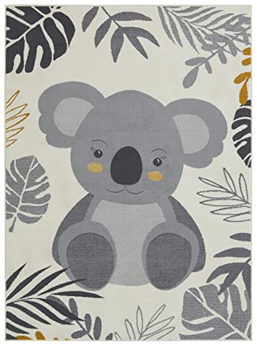 Hanse Home Tappeto per cameretta dei bambini, Koala - Tappeto da gioco a pelo corto, moderno con cuori, in pelo morbido, facile da pulire, colore crema, motivo floreale, 80 x 150 cm