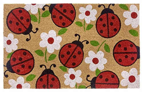 Hanse Home Zerbino in cocco per interni, 45 x 75 cm, per esterni, in cocco, con design a coccinella, resistente alle intemperie, antiscivolo, ingresso e esterno protetto, naturale