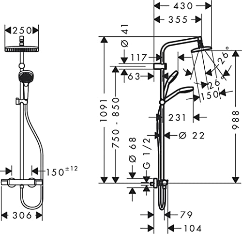 Hansgrohe 26764400 Colonna Doccia, Cromato, 10 x 108,5 x 36 cm