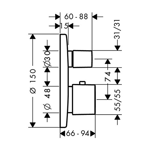 Hansgrohe 31573000, Set Esterno per Miscelatore Monocomando Vasca/Doccia Ecostat e Cromato