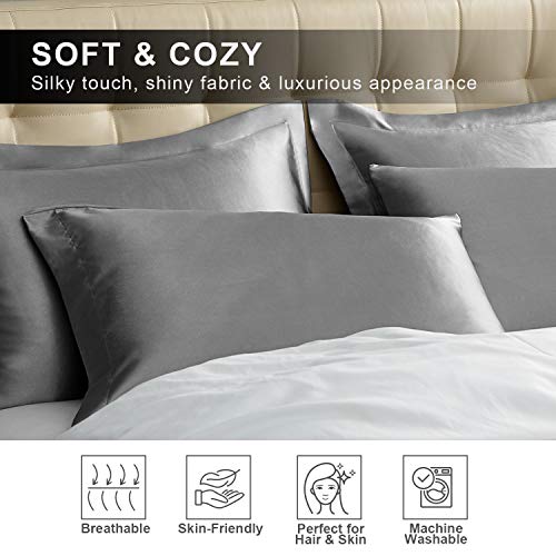 Hansleep - Set di 4 federe in raso per capelli e pelle, ultra morbide, 50 x 75 cm, colore: Grigio scuro