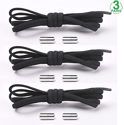 Hantoc 3 Paia Lacci per Scarpe Elastici Rotondi, Elastici Lacci delle Scarpe Autobloccanti con Chiusura in Metallo No Tie Lacci Scarpe per Adulti e Bambini,Anziani 105cm Diametro 4.5 mm Nero