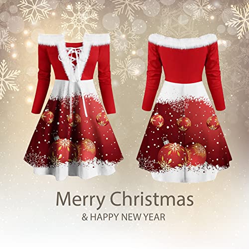 Hanxiulin Abito da donna di Natale, lunghezza al ginocchio, elegante, per feste, cocktail, vintage, rockabilly, a maniche lunghe, bianco, S