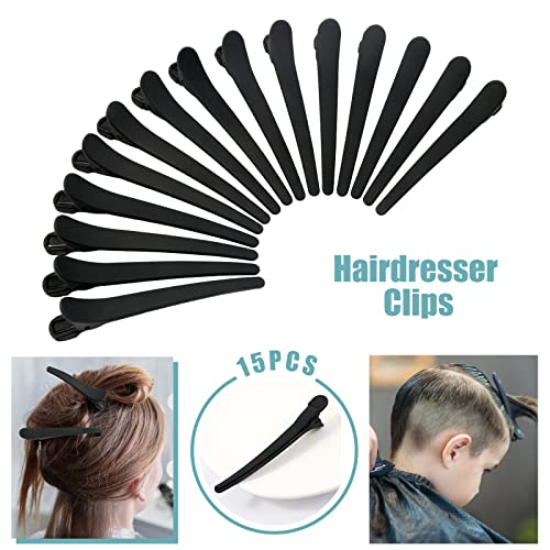 Hanyousheng 4,72inch Fermagli per Capelli, 15 Pcs Becco d'Anatra Mollette per Capelli, Antiscivolo Styling Clip Plastica, Pinze per Capelli Professionali per Donna Parrucchiere Sezionamento, Nero