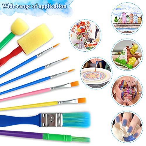 [9 diverse dimensioni di spazzole per bambini]: 1 Pennello per Bambini, 1 Pennello Tondo, 2 Pennelli per Dettagli, 3 Pennelli per Trucioli, 2 Pennelli in Spugna.