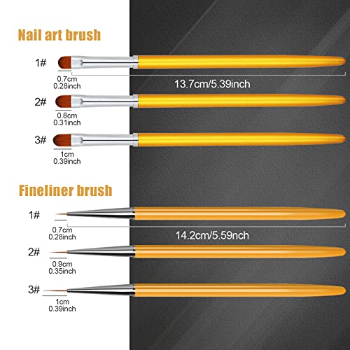 Varie Dimensioni: Riceverai 6 pezzi di pennelli per nail art in totale, con dimensioni diverse, quantità sufficiente e una buona combinazione per soddisfare le tue esigenze.