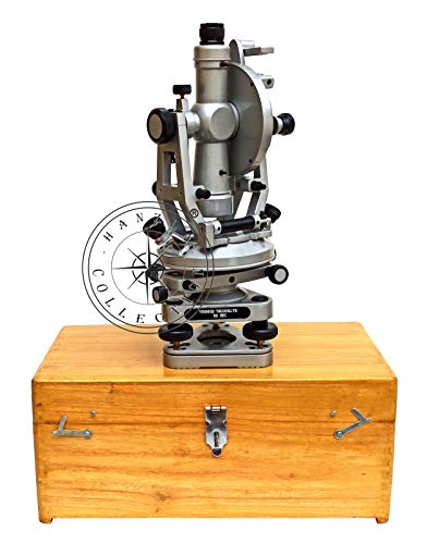 Hanzla Collection 20 Secondi Ottone Vernior Teodolite 38,1 cm Transit Surveyors Silver Alidade Vintage Strumento di Surveying Con Scatola di Legno