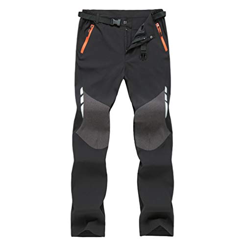 Haobing Uomo Pantaloni Lunghi da Escursionismo Impermeabile Pantaloni Asciugatura Rapida Pantalone Trekking con Cintura (Nero, CN M)