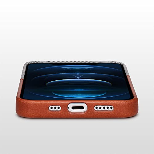 HAOBOBRO Custodia per iPhone 12 e iPhone 12 Pro - 1 scomparti per carte di credito o carte di credito - Cover in tessuto di alta qualità e pelle - Sottile ma protettiva - Cover marrone