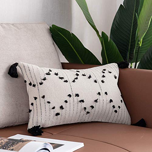 Materiale e tessuto: 45% cotone + 45% poliestere + 10% viscosa. Comodo e stente. Questo boho decorativo cuscino copre produrre con materiale spesso, è difficile vedere attraverso se si tira un riempitivo colore profondo su di esso.
