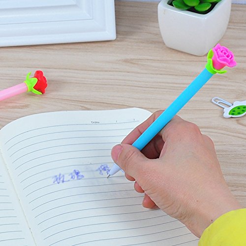 Haodou 12pcs colorato Rose di penna gel penna creativa creativo piuma nero acqua di Student forniture per ufficio da scrivere ware 16.5 cm (colori casuali)