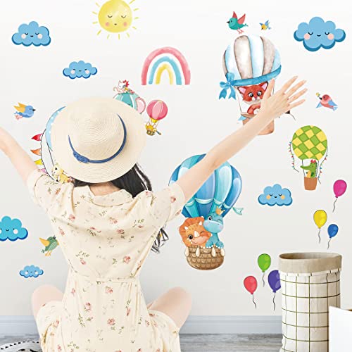 HaoFuJi Adesivi Murali Arcobaleno Fai da Te Mongolfiere Decorative, Adesi da Parete bambini Animali Uccello Volpe Leone per Camera Cameretta Studio Soggiorno Corridoio