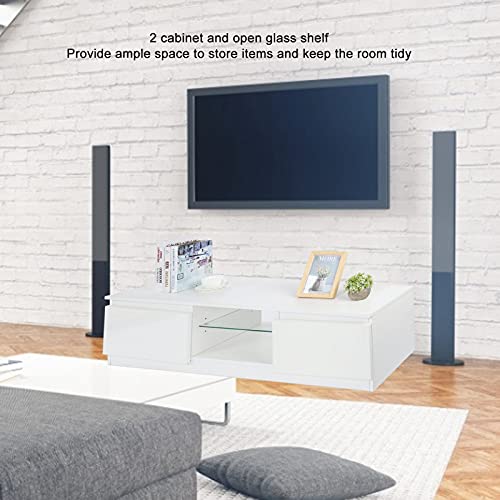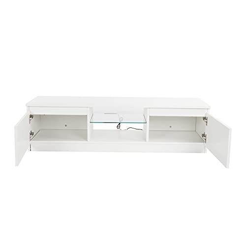 Haofy Mobile TV a LED, Mobile TV Moderno Bianco con Luce LED Blu, con 2 Ante, Mobiletto Portaoggetti per Camera da Letto, Soggiorno, Mobili per la Casa