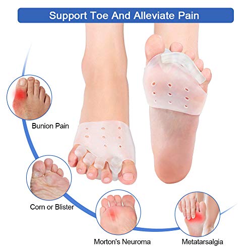 DUE PAIA PER USO INTERNO ED ESTERNO: un paio di cuscinetti metatarsali in gel con separatori per dita per uso esterno e un paio di tenditori per dita in gel per uso interno. Set separatore per dita intere per alleviare il dolore ai piedi, muovere le dita dei piedi per trattare e prevenire vari problemi ai piedi, come pile, alluce valgo, dita a martello o semplicemente per rilassare le dita dei piedi, yoga, passeggiate e balli.