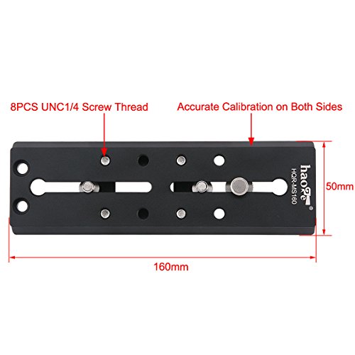 Il haoge hqr-ms160ii versione lunga piastra a sgancio rapido è un Sachtler compatibile Rail multiuso con una scala di riferimento inciso al laser con incrementi di 1 mm su entrambi i lati.