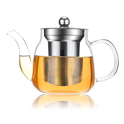 Infusore per tè in acciaio inossidabile 18/8. Teiera in vetro borosilicato di alta qualità, il colino è realizzato in acciaio inossidabile 304 che non arrugginisce mai e può essere lavato in lavastoviglie. Il vetro straordinario è in grado di resistere a impatti e rotture pur rimanendo leggero. Realizzato in vetro borosilicato che può sopportare gli sbalzi termici.