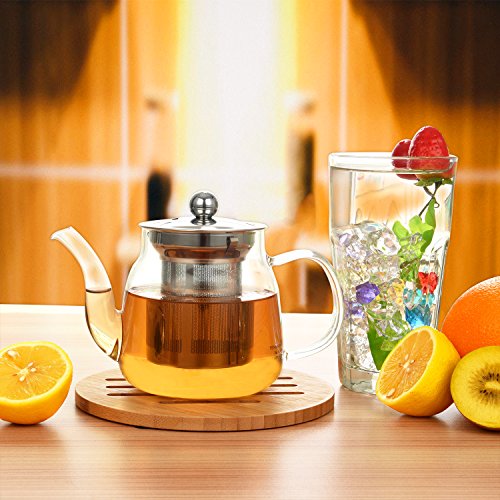 Haohan - Teiera da 600 ml, resistente al calore, teiera di vetro con infusore rimovibile, adatta a microonde e lavastoviglie