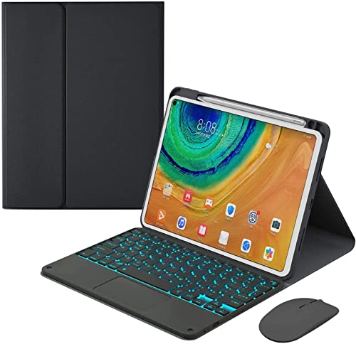 HaoHZ Custodia Tastiera per Huawei Matepad 11 con Touchpad, Tastiera Staccabile Retroilluminata Smart Cover Sottile in Pelle con Supporto per Matita,Nero