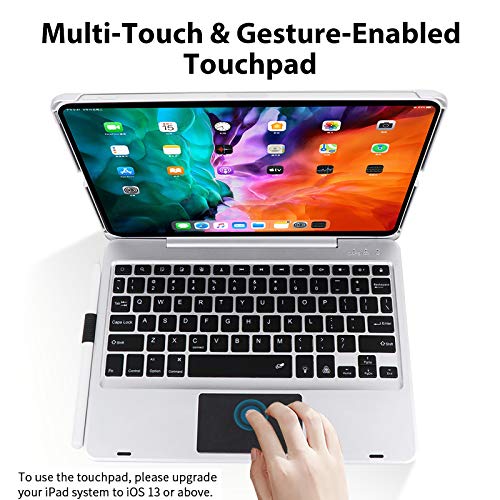 HaoHZ Tastiera Custodia per iPad PRO 11 2021/2020, Wireless E Bluetooth, US Layout Tastiere Retroilluminate A 7 Colori con Touchpad, Supporto per La Ricarica della Matita,Argento
